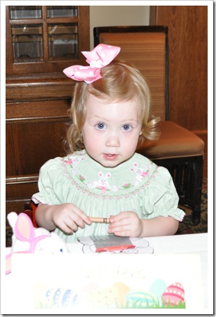 We had a pretty low key Easter this year, spending it just as a family of three. We started the day off with church (nursery still for EC), then we came home so Emmy Cate could get her Easter basket. Luckily, this kid isn’t much into sweets so it wasn’t a big deal when we had to take the candy away from her.